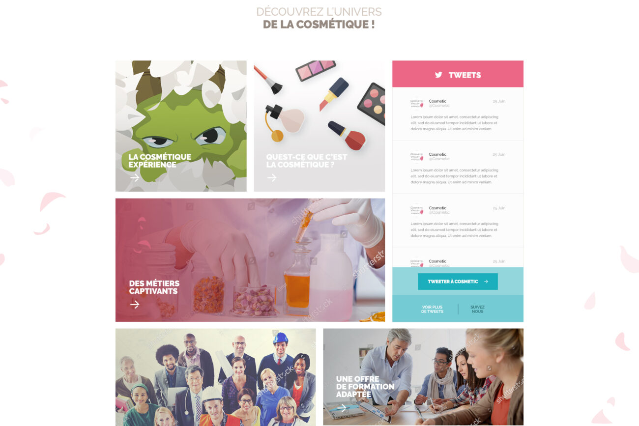 Le client souhaitait valoriser les métiers de la cosmétique à travers un site internet innovant, conçu pour attirer et engager des publics variés, notamment les étudiants et les personnes en reconversion professionnelle. L’objectif était de concevoir une plateforme immersive qui dépasse les simples descriptions textuelles en offrant une découverte enrichissante et visuelle des carrières disponibles. En intégrant des fonctionnalités interactives et du contenu multimédia de pointe, le site devait permettre aux utilisateurs de naviguer facilement parmi les parcours de formation, d’explorer les compétences clés, et de mieux comprendre les débouchés dans ce secteur.