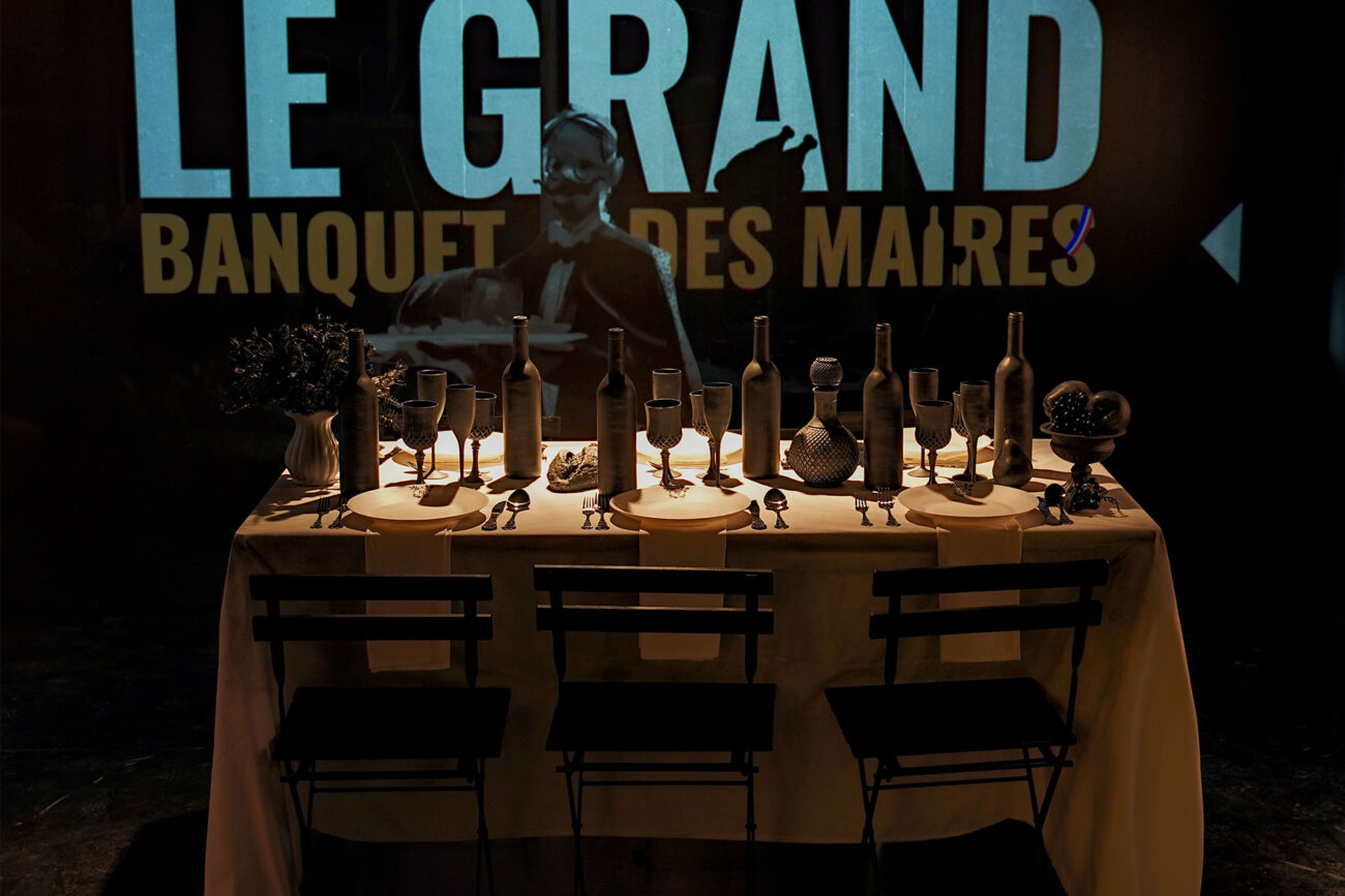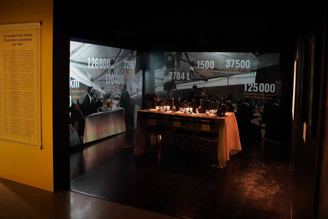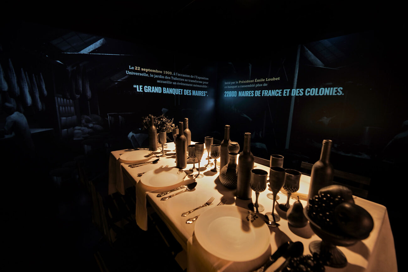 Le Domaine des Saveurs souhaitait donner vie à un événement historique méconnu mais emblématique : le banquet géant réunissant plus de 20 000 maires dans le parc de Saint-Cloud à l’aube du XXe siècle. L’enjeu était de traduire ce moment fort en une expérience muséale marquante, susceptible de captiver à la fois les publics scolaires et le grand public, tout en s’inscrivant dans une scénographie temporaire simple à déployer.