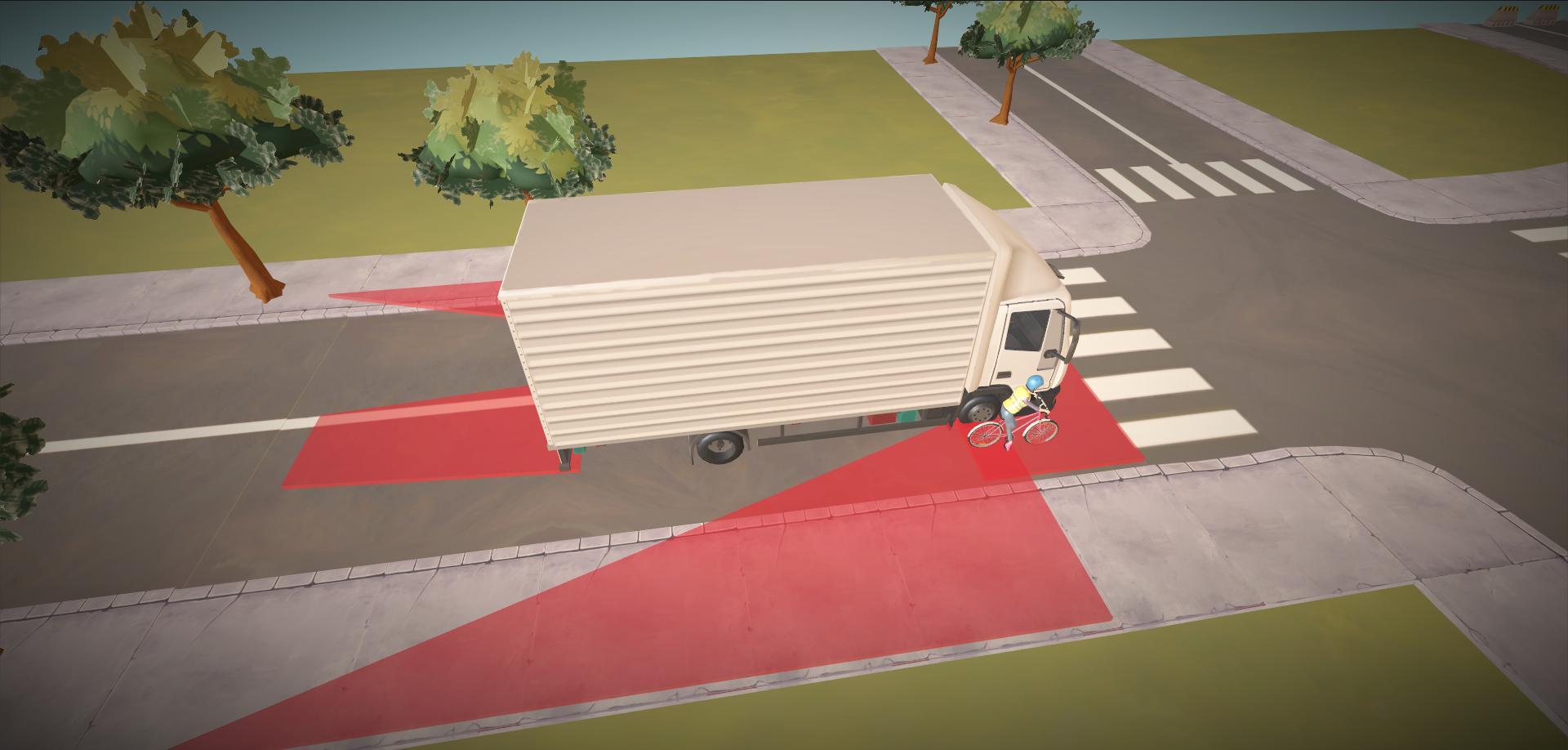 Pour répondre à ce besoin, nous avons développé un serious game en réalité virtuelle, publié sur l’Oculus Store, qui place l’utilisateur au cœur de reconstitutions d’accidents. En adoptant successivement le point de vue de chaque protagoniste, le joueur expérimente les angles morts de manière intuitive et marquante. Ce choix narratif et technique, soutenu par notre équipe en conception interactive, UI/UX et développement 3D, permet une prise de conscience active, renforçant l’impact pédagogique de l’expérience.