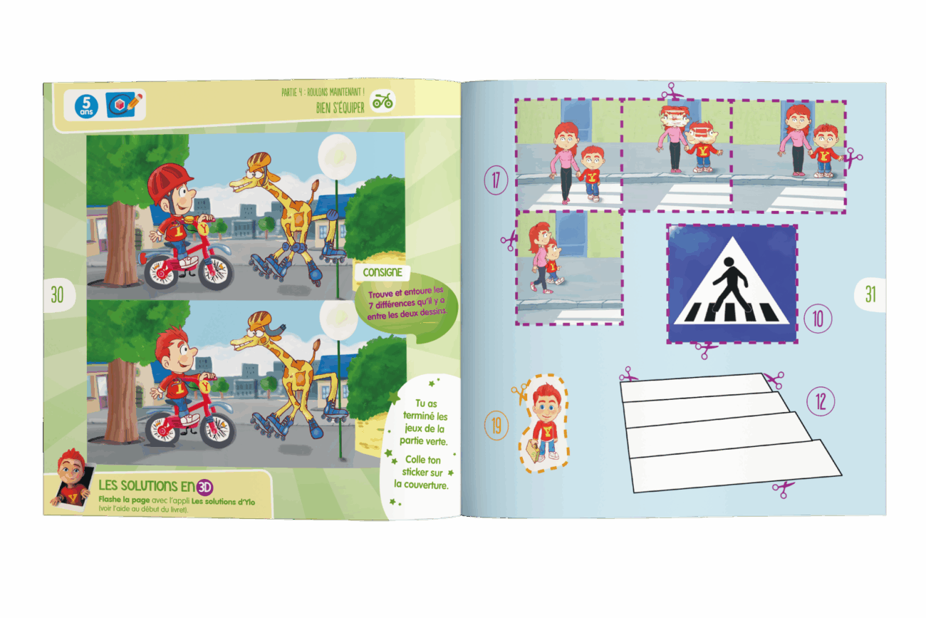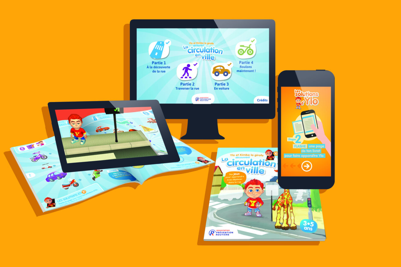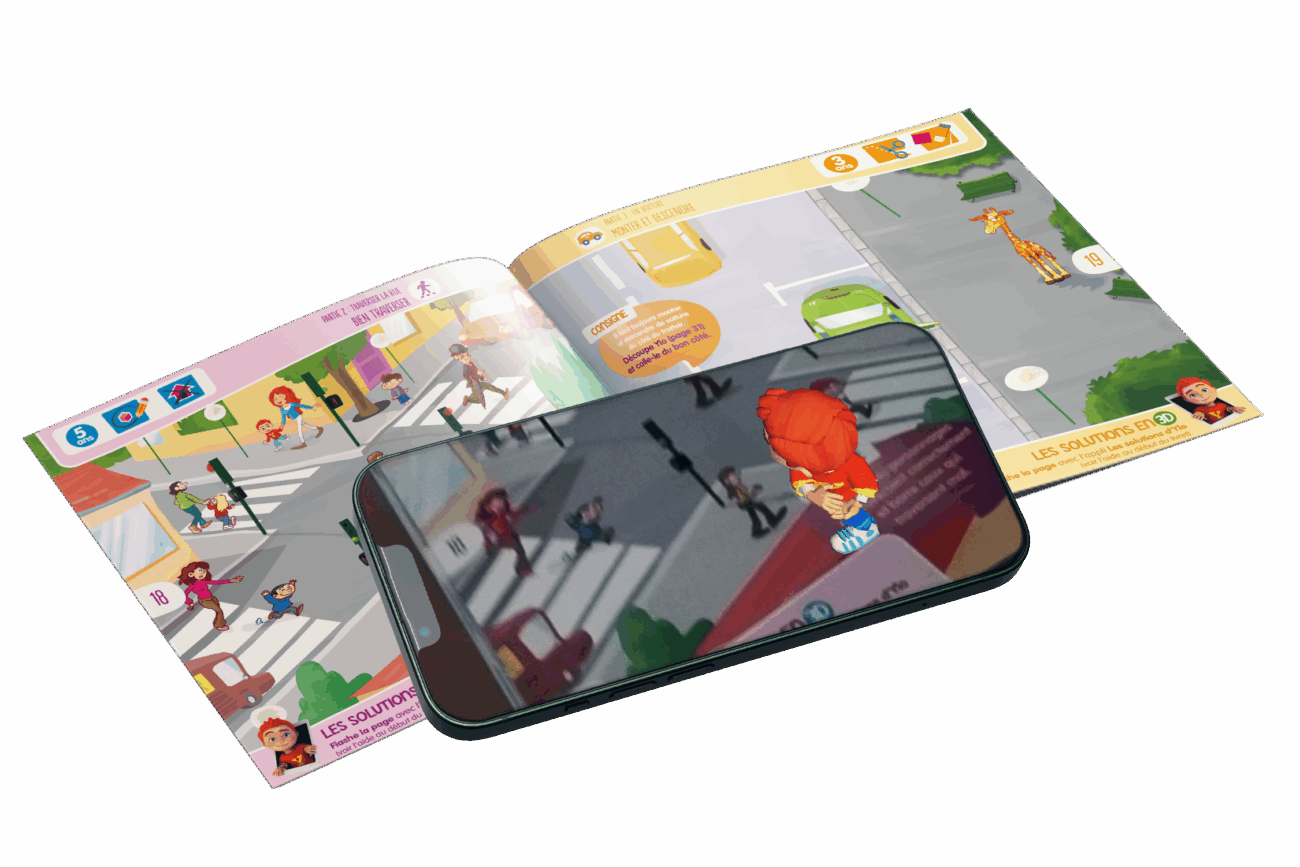Nous avons conçu un livret augmenté en collaboration avec l’association Prévention Routière et Allianz, spécialement destiné aux enfants de maternelle âgés de 3 à 5 ans. Intitulé « Ylo et Kimba la girafe découvrent la circulation en ville », ce support pédagogique innovant combine un livret physique avec une application 3D interactive. À travers quatre grands thèmes — découverte de la rue, traversée, sécurité en voiture, et mobilité à vélo ou trottinette — les enfants apprennent les bases de la sécurité routière grâce à des animations ludiques et des quiz adaptés à différents niveaux de difficulté.